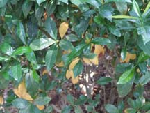 If you have allowed the soil to become very dry the plants may be at critical drought stage which means they are going to start dying or, at the very least, they will begin to lose leaves, stems and branches. Conifers, such as the Leyland Cypress, will begin to lose needles especially on the inside of the plant. Other trees may develop strange variegation on the leaves or just brown leaves before the leaves fall off the tree. Shrubs will just completely fail, losing all their leaves very suddenly. Trees and shrubs also become more susceptible to pest attack when they become stressed. Disease development increases as does insect and mite activity. Consequently more pesticide must be used to correct problems that were preventable simply by watering. Oftentimes, diseases that we have no treatments for start during stressed periods.